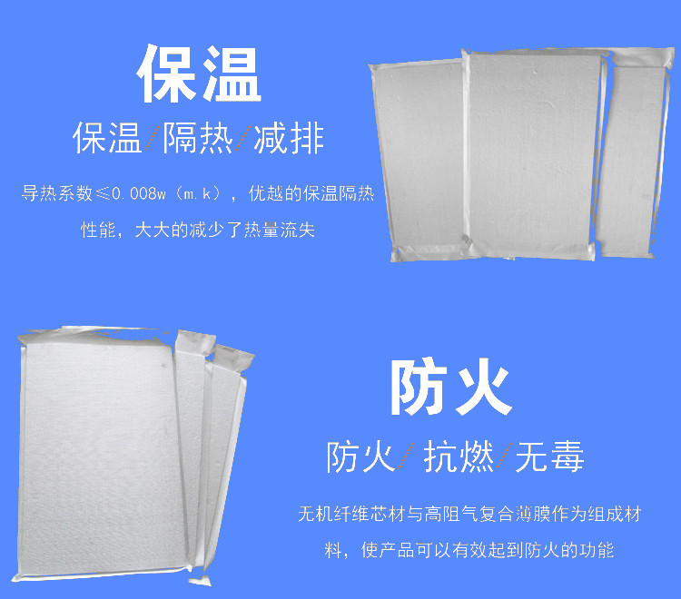 真空隔熱板是真空保溫材料中的一種,是由填充芯材與真空保護表層復合而成,它有效地避免引起的熱傳遞,因此導熱系數可大幅度降低,小于0.035w/(㎡.k),并且不含有任何ODS(ozone depleting substances)材料,具有環保和節能的特性,是目前世界上先進的保溫材料。