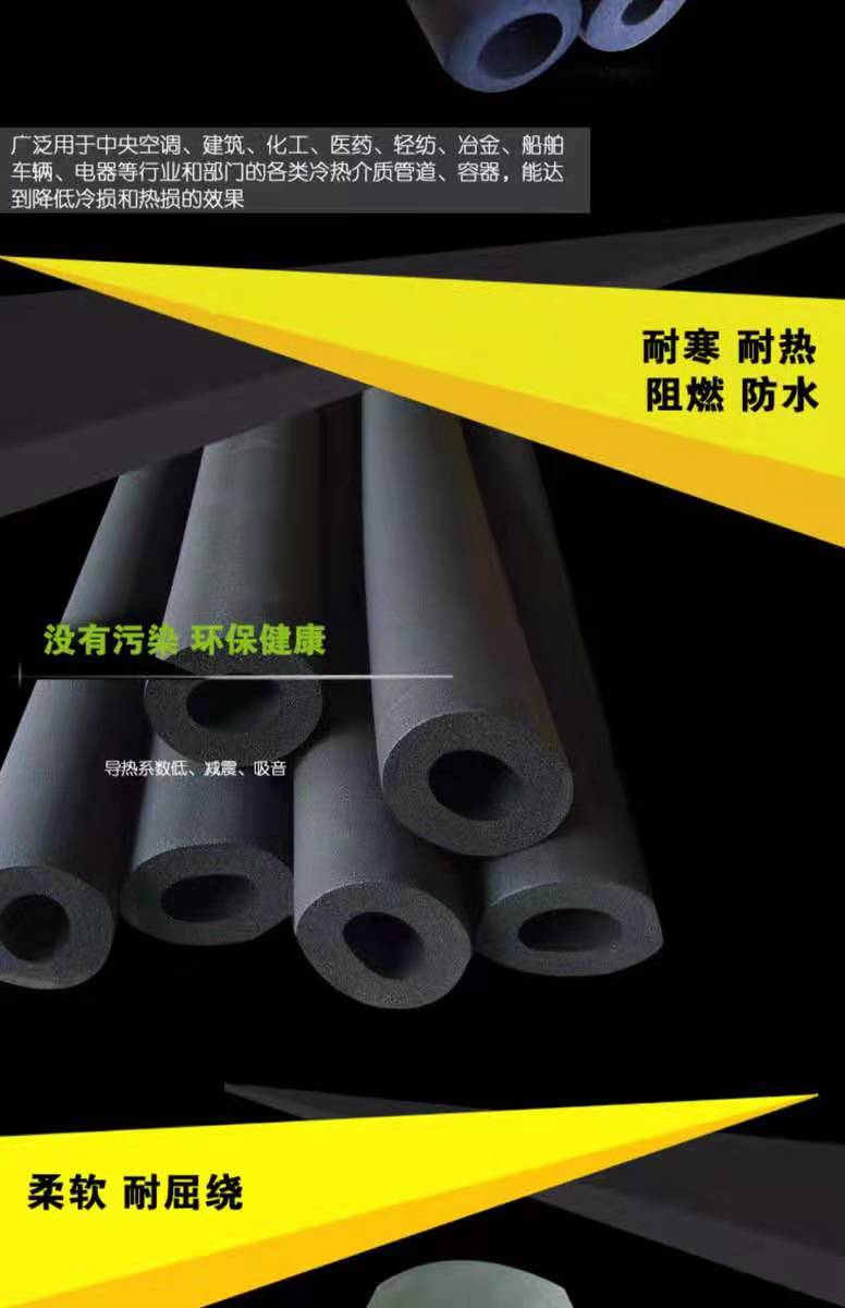 橡塑保溫管導(dǎo)熱系數(shù)低 完全閉孔結(jié)構(gòu),絕熱效果持久良好;材料與水汽完全隔 吸水,不易燃燒,不凝露,使用壽命長(zhǎng),經(jīng)過(guò)SGS檢測(cè),其實(shí)測(cè)值遠(yuǎn)遠(yuǎn)低于歐盟關(guān)于不含有毒物質(zhì)的標(biāo)準(zhǔn)值,使用健康安全;外表柔軟美觀,易彎曲,施工方便快捷,而且無(wú)需其他輔材。