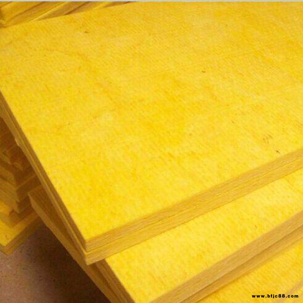 玻璃棉板:為玻璃棉氈施加酚醛樹脂粘合劑,加壓加溫固化成型的板狀材料,表面可粘貼PVC膜面料,也可粘貼鋁箔。產品具有容量輕、吸音系數大、阻燃等特點,有極好的化學穩定性。