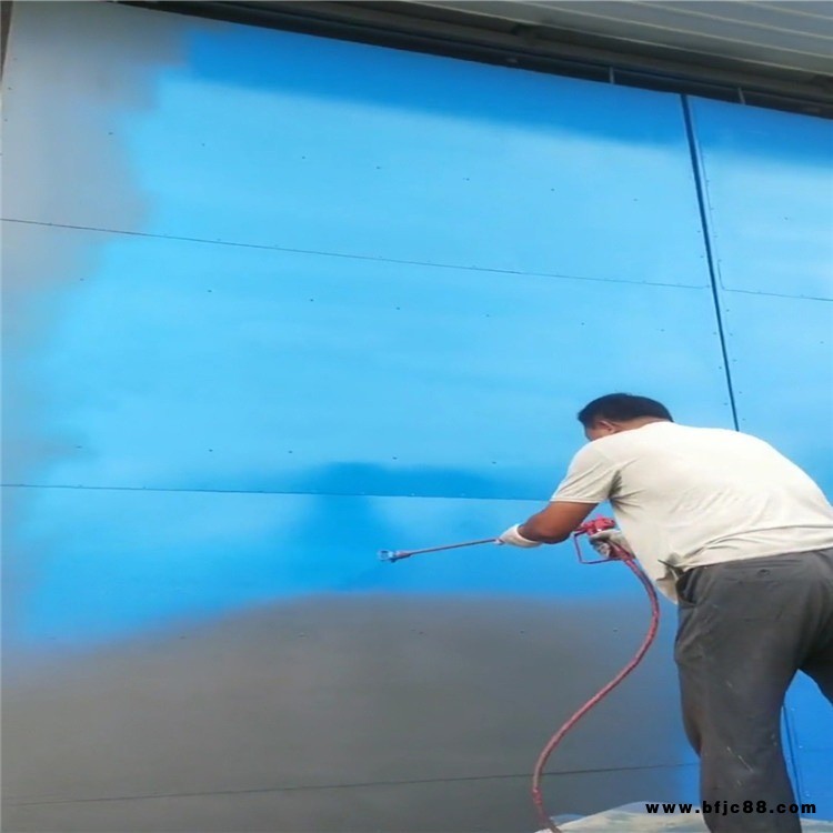 將水性彩鋼翻新漆攪拌均勻,用噴涂機均勻噴刷。噴刷基面干燥無浮土。環(huán)境溫度為: 23℃,8h內(nèi)結(jié)膜,環(huán)境溫度低長些,反而短些。一遍固化后,在涂刷二遍,涂刷方向必須和一遍相垂直,如需細節(jié)加固,可使用密度玻璃絲布或本公司自粘防水卷材。
