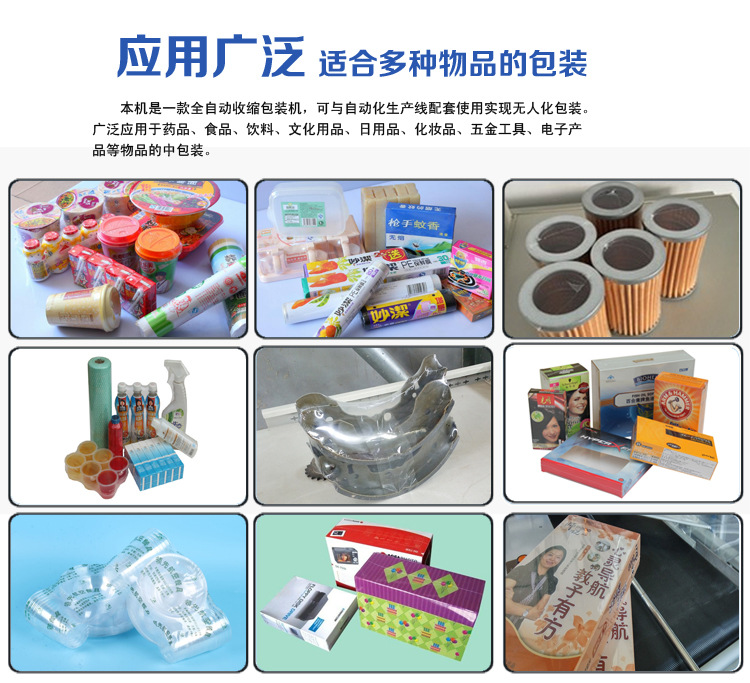 自動L型封切收縮包裝機是一款全自動無人化操作的L型封切機,自動送膜打孔、套膜封切,只需手動調節導膜系統以及手動調節進料輸送平臺,適用不同寬度及高度的產品。該款收縮包裝機應用于食品、軟件、醫藥、飲料、煙草、日化、汽車、線纜、化妝品、電子等大批量產品收縮包裝。