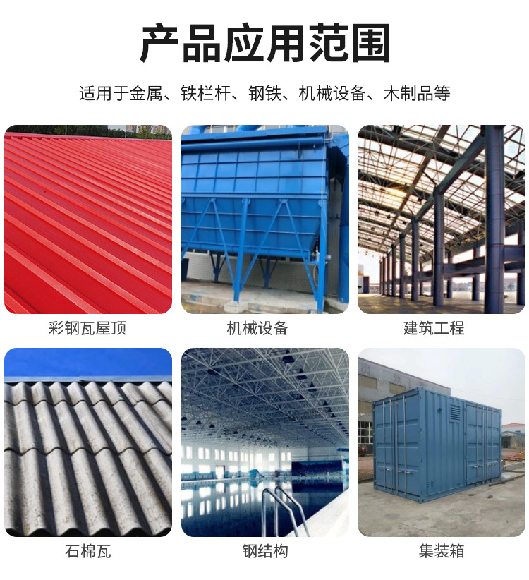 適用于彩鋼瓦屋面、金屬屋面、鍍鋅板屋面、鋼結構屋面等金屬表面耐高低溫防腐保護處理。