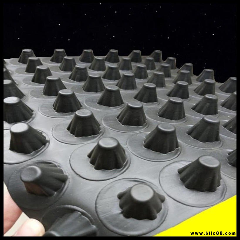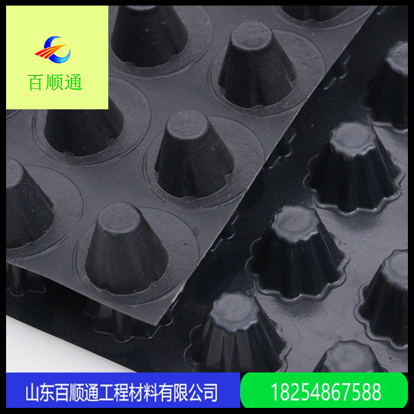 塑料排水板分卷材及片材二個系列,造型上采用特殊工藝將塑料板材壓出封閉凸起的柱狀殼體,形成凹凸狀膜,殼連續,具有立體空間和一定支撐高度,邊沿加工生產時熱粘上丁基橡膠條,殼頂部覆蓋土工布過濾層,用于滲水、疏水、排水和蓄水的產品。又稱為:搭接粘膠排水板、排疏板、排水保護板、濾水板、塑料凹凸排水板、塑料夾層板。產品規格分為廣場綠化用和地下室用,有H20、H25規格供選用。
