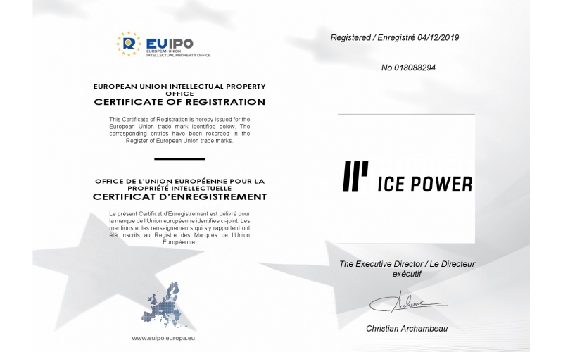 ICE POWER同時已取得了中國大陸,歐盟以及美國的商標注冊保護