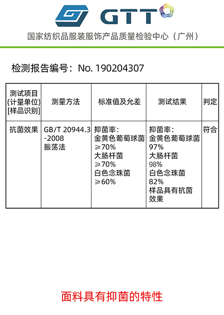 功能 : | 抗菌,防靜電,三防,吸濕排汗,防水,其他 | 成分及含量 : | 新型復合高分子聚烯烴纖維 |