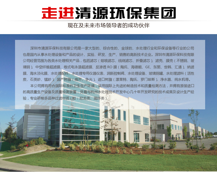 深圳市清源環科技有限公司是一家大型的、綜合性的、全國球的、水處理行業和環保設備等行業的公司,也是國內從事水處理設備和產品的設計、實驗、研發、生產、銷售的高新技術企業。深圳市清源環保科技有限公司經營范圍為各類水處理相關產品,包括濾芯、濾殼、膜殼、中空纖維超濾膜、進口反滲透膜/RO膜、水處理配件、水處理專用儀器儀表、水處理設備、水處理濾料、凈水器、純水機等。本公司擁有符合國際標準的衛生生產環境,采用國際上先進的制造技術和質量檢測方法,并擁有原裝進口的高質量生產設備及質量檢測裝置,憑著與杭州水處理技術開發中心幾十年開發研究的技術成果及設計生產經驗,專業研制多品種過濾材質(如:尼龍類、混纖類)。