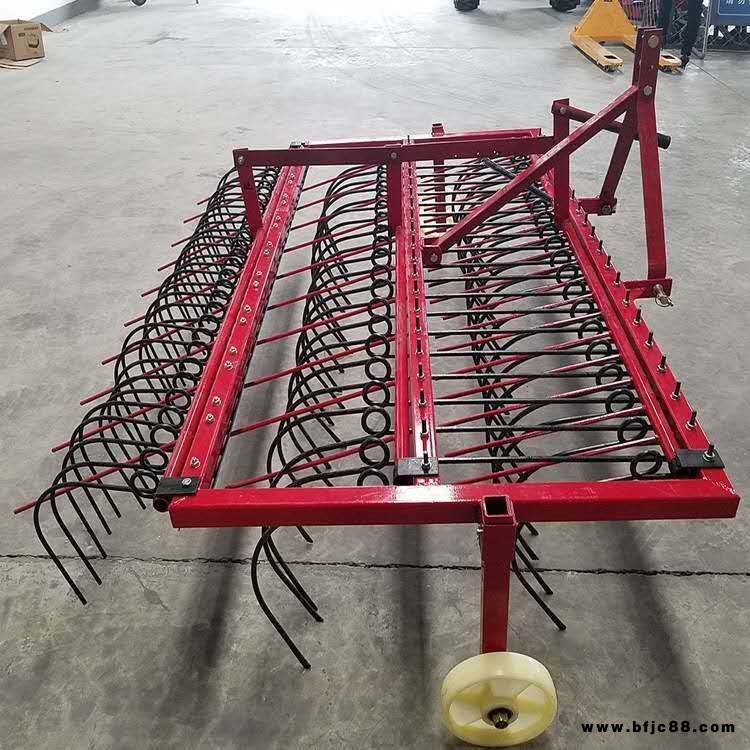 ?該機結構簡單,操作方便,使用可靠,故障少,功效高,作業質量好。保養簡便,動力配套性能好。并且既能摟草,又可進行翻曬作業(可將摟集成條的草條重新攤開)。該機與我廠生產的割草機配套使用,可將割幅形成的三個草條摟集成一個均勻的草條,便于隨后的打捆作業。