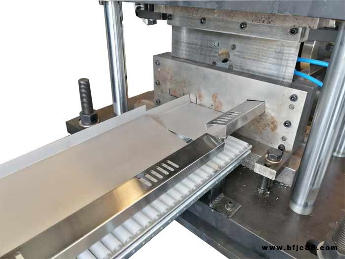 自動放料機—校平—送料部分—連續沖孔部分—成型部分—定尺切斷部分—自動折彎—收料臺、電氣控制柜等部件組成