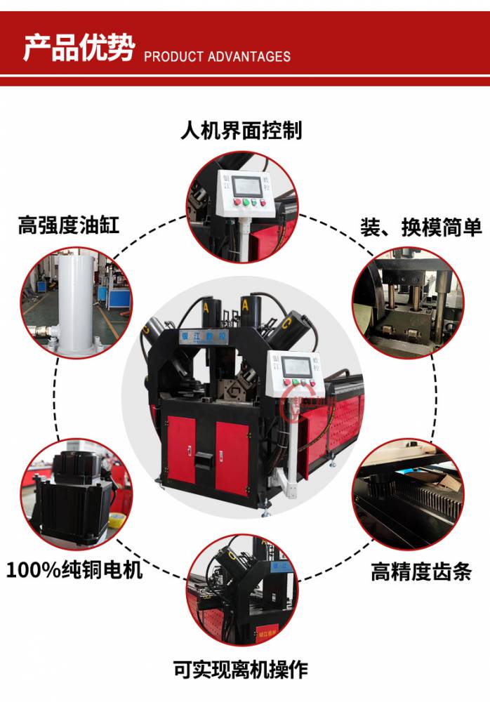 孔自動切換3種不同孔徑。并且可以根據客戶要求設計在槽鋼沖孔的同時沖斷的相關設備。