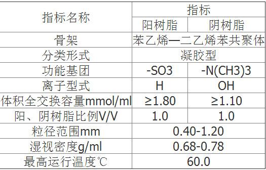 混床超純水樹脂的性能:
