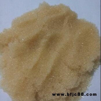 本產品是在 —= 共聚交聯結構的高分子基體上帶有磺酸基(—SO3H)的離子交換樹脂,其酸性相當硫酸、鹽酸等無機酸,它在堿性、中性,甚至酸介質中都顯示離子交換功能。本產品具有交換容量高、交換速度快、機械強度好等特點。