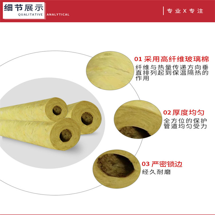 玻璃棉管殼是以天然玄武巖為主要原料,經高溫熔融后,由高速離心設備制成人工無機纖維,一起參加特制的粘結劑和防塵油,再經加溫固化,制作成各種規格,不一樣需求的巖棉保溫管。