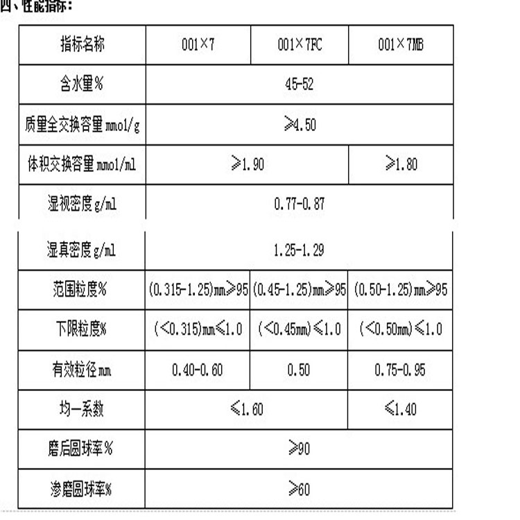 4、工作交換容量: 25℃≥1000mmol/l(濕)