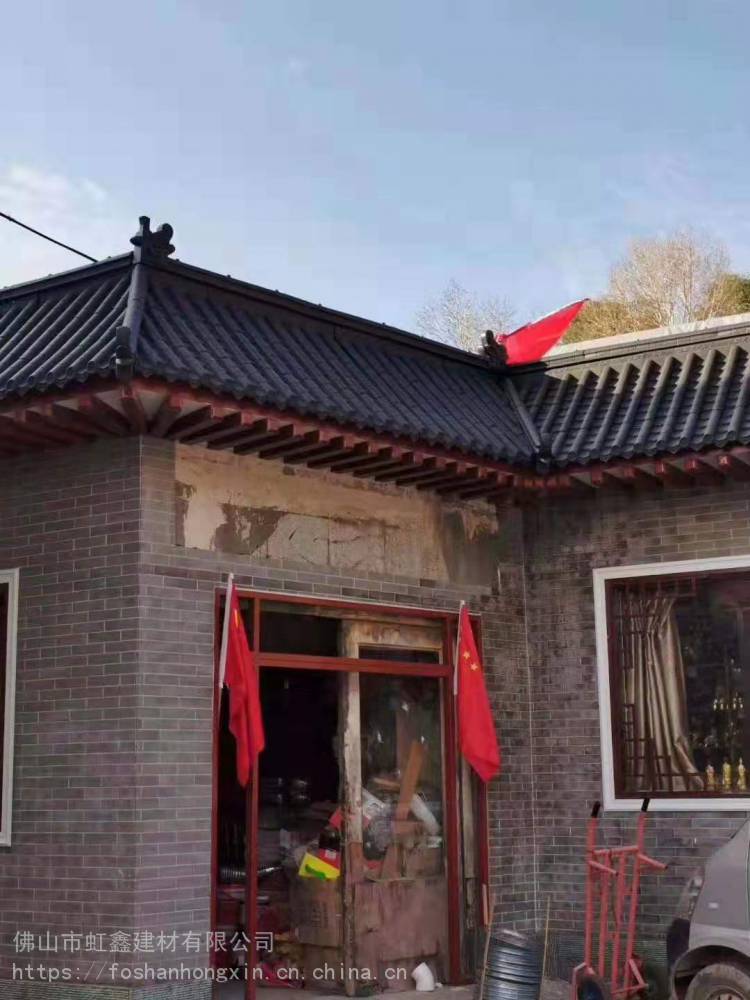 屋檐乃房屋的邊緣位置,一套房子的美觀度、風(fēng)格,屋檐瓦起著決定性的作用。因此屋檐瓦一經(jīng)問世,深受喜愛,因其獨特的設(shè)計、便捷性被廣泛的使用,給裝修一種獨異的風(fēng)格,更加復(fù)古適合于更多的客戶。屋檐瓦具有中式風(fēng)格,中國古韻、傳承中華之美。一體化鑄造而成,檐口平整光滑,使用高分子材質(zhì),經(jīng)久耐用,牢固不脫落,經(jīng)風(fēng)雨考驗飽經(jīng)風(fēng)霜。印有精美花紋,獨特設(shè)計,更顯優(yōu)雅。一體成型,安裝快捷,全新搭接設(shè)計,方便實用,連接縫隙小,視覺更美觀。屋檐瓦是非常具有中國式氣息的建筑瓦片,佛山虹鑫建材無論從原料,生產(chǎn)到使用過程都是環(huán)保綠色建材,越來越多人都在追求老祖宗留下來的古建筑精髓,從建筑外形到內(nèi)部裝潢都對中國古建筑風(fēng)情情有獨鐘,在這一股中國風(fēng)的驅(qū)動下。屋檐瓦異軍突起,成為了瓦中的佼佼者,在各地的平改坡,園林景區(qū)建設(shè)中頗受歡