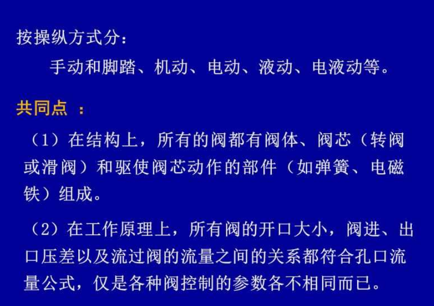 - 手動換向閥是依靠手動杠桿的作用力驅(qū)動閥芯運動來實現(xiàn)油路通斷或切換的方向控制閥此時溢流閥開啟,使多余流量溢回油箱,保證溢流閥進(jìn)口壓力,即泵出口壓力恒定(閥口常隨壓力波動開啟)