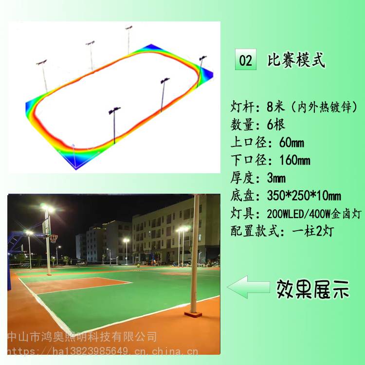 戶外籃球場燈光配置方法主要兩種:經濟型4燈桿籃球場燈光配置和標準型6燈桿籃球