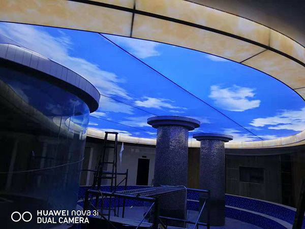 4.軟膜天花防水防潮功能:軟膜天花為材料制成,故防水防潮防塵。并具有很好的隔熱性能。有水氣時(shí)不結(jié)水露,可提高室內(nèi)空調(diào)使用效率。原理同潛水員穿著潛水服來(lái)延遲體溫流失于海水是一樣的。軟膜天花的安裝經(jīng)實(shí)地精心測(cè)量,裁剪后經(jīng)高頻焊接制作后整塊安裝,周邊均勻受力,邊角收口密封,無(wú)須進(jìn)行后期表面再處理,故無(wú)脫色脫落等問(wèn)題。