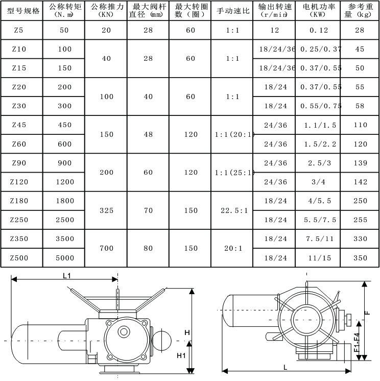KFZ多回轉閥門電動裝置,通稱為Z型,有轉矩型和推力型。適用于閥瓣做直線運動的閥門,如閘閥、截止閥、隔膜閥、水