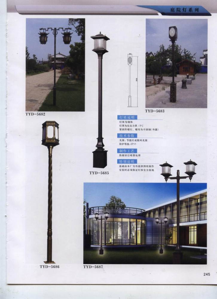 三.公司產品質量保證、價格合理;主要生產庭院燈、景觀燈、高桿燈、中桿燈、太陽能路燈、草坪燈、LED路燈等。