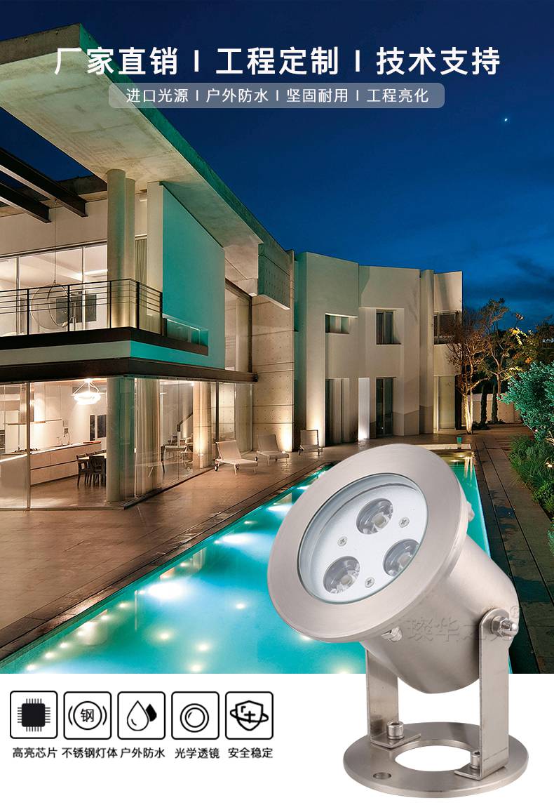 不銹鋼led水底燈3W泳池噴泉魚池涌泉燈rgb水下射燈