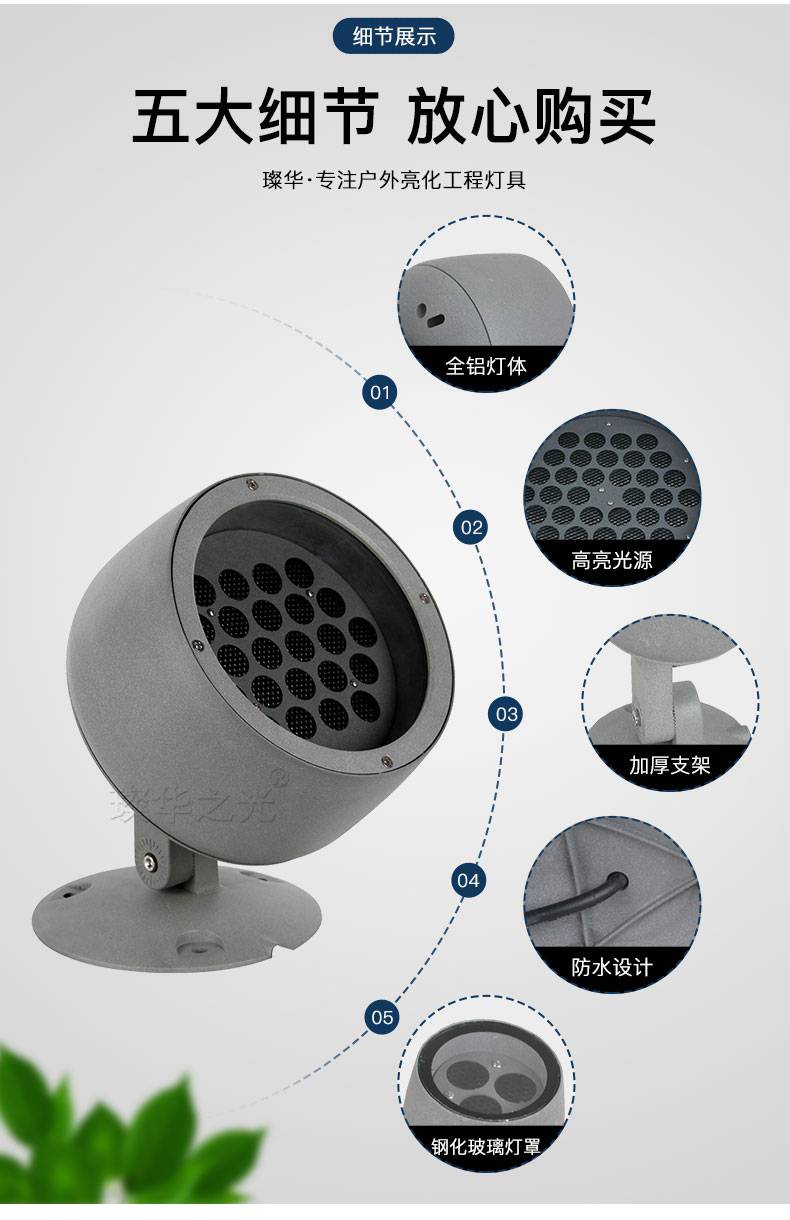 產品介紹:私模圓形結構防水投光燈,深藏式防眩設計,深筒、內置階梯微防眩器,搭配蜂窩格柵,實現三重防眩光效果。