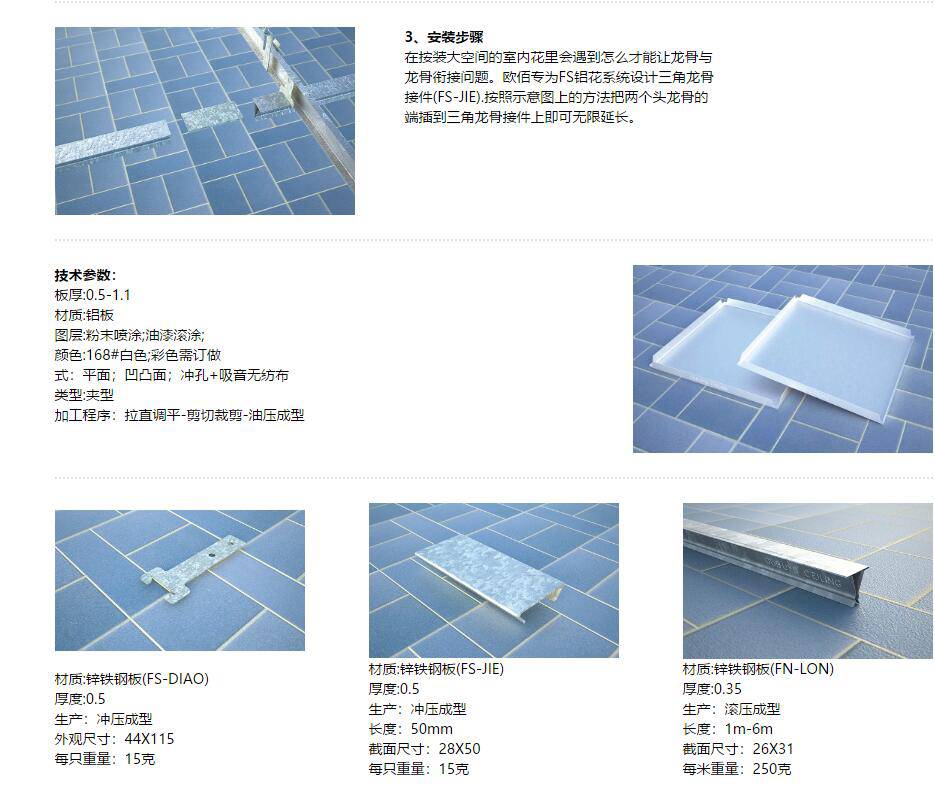 一、????????????規格型號;“歐佰“噴涂金屬吊頂可提供的產品有?方板(600*600mm,??300*300mm?300*1200mm??600*1200mm?等);條扣(H型、C型、U型);異形板、組合天花、方形風口等,還可根據客戶實際的需要度身定造;