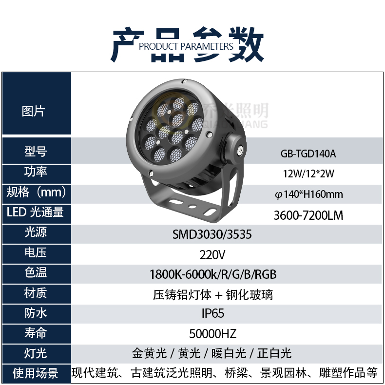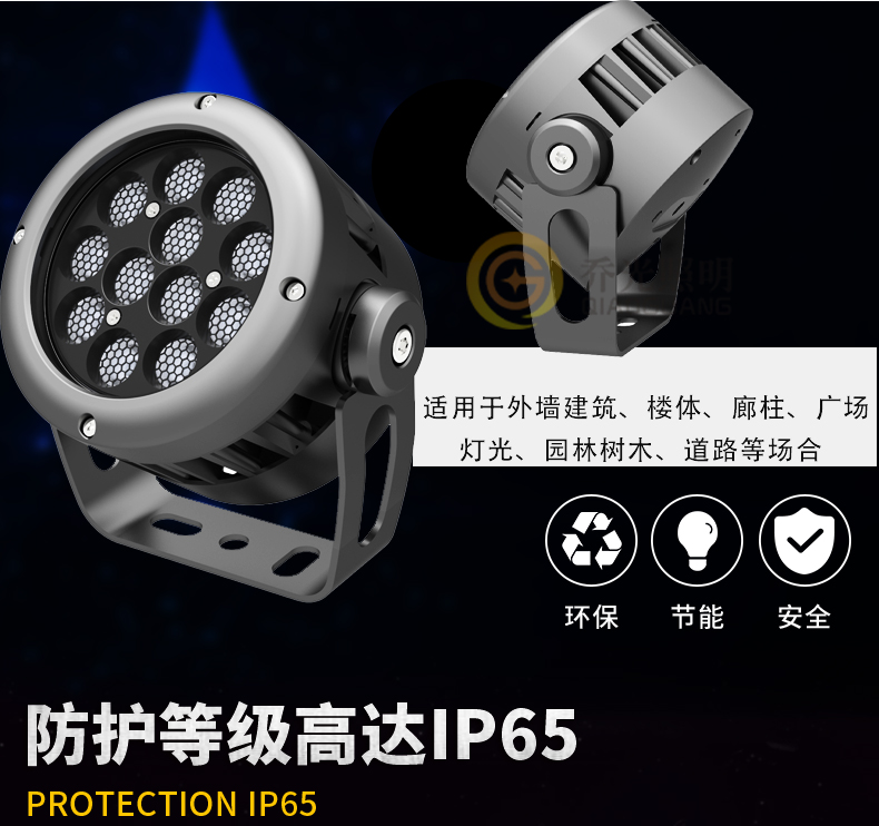 光通量 : | 1200-2400LM | 用途范圍 : | 外墻建筑、樓體、廊柱、廣場燈光、園林樹木 |