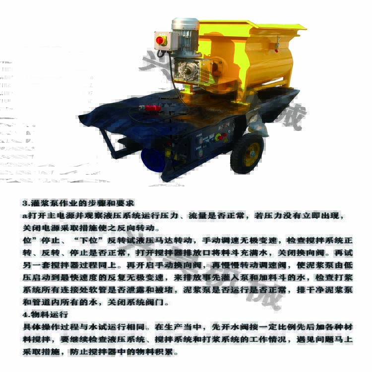 我廠主要產(chǎn)出:砂漿泵、灌漿泵、細石輸送泵、灌漿泵、灌漿機、砂漿機、水泥輸送泵、螺旋輸送泵等工程機械。按照專業(yè)商家的實際施工要求,我們的專業(yè)流體控制系統(tǒng)可以選擇或定制,以控制有差別部件和比例的流量,1.環(huán)保:機械性能好,無噪音,無污染,2.便攜式:體積小,重量輕(體重約8公斤),以便攜帶和操作,3.高動力等級:幾秒鐘內(nèi)可以達到0-20MPa的工作壓力,技術(shù)先進、省時、省力、 ,4.安全性:技術(shù)靠譜,結(jié)構(gòu)合理,使用安全,5.雙泵體結(jié)構(gòu)和流體控制器可滿足多組分或不相同比例的灌漿要求。