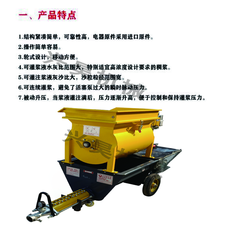 工程機(jī)械種類 : | 混凝土機(jī)械 | 產(chǎn)品別名 : | 攪拌一體灌漿泵 |