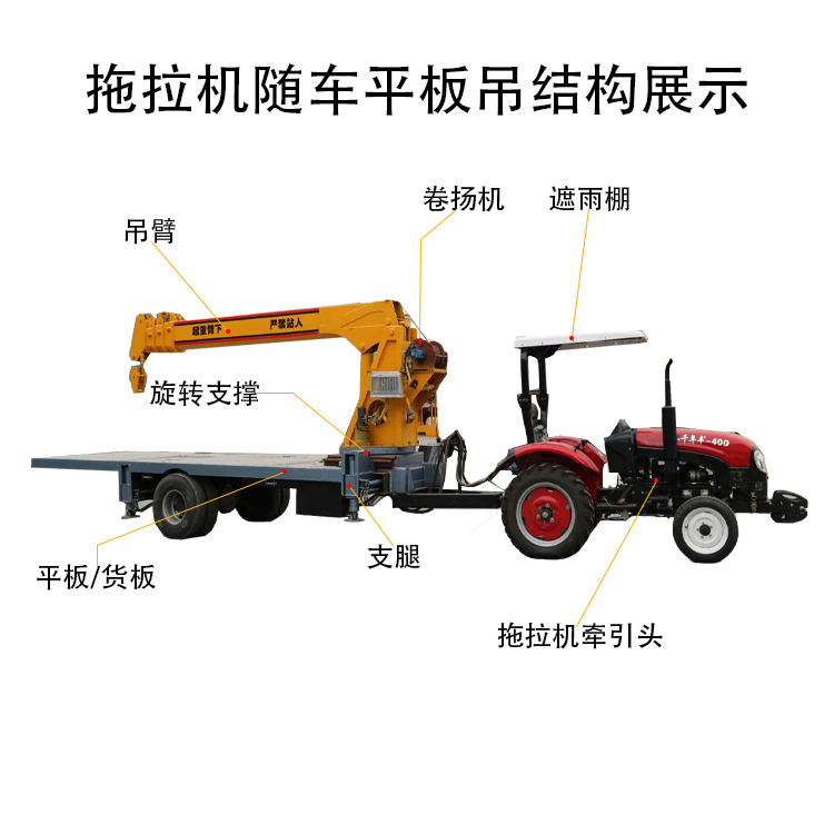 農(nóng)用拖拉機(jī)頭牽引平板隨車吊