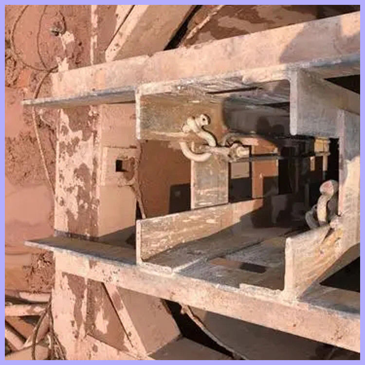 鋼筋籠下落至孔口位置時用型鋼進行固定,將格構柱吊至鋼筋籠內進行加固連接;格構柱吊至孔口位置時,用型鋼固定,用螺栓與導柱進行連接。