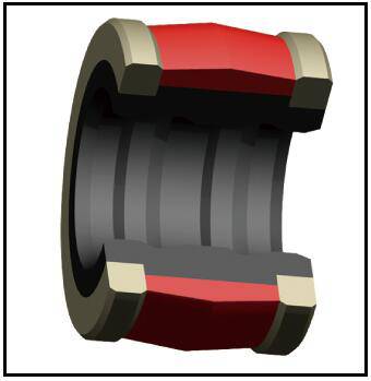 鼓形密封圈的中間是一個鼓形彈性橡膠圈,兩側是夾織物層,夾織物層外側是兩個L形酚醛樹脂制的支撐環,三者合為一體。鼓形橡膠圈相當于唇型密封圈的唇部,橡膠密封圏固定在活塞桿溝槽底部,密封唇與液壓缸壁之間有一定過盈量,以保證零密封。